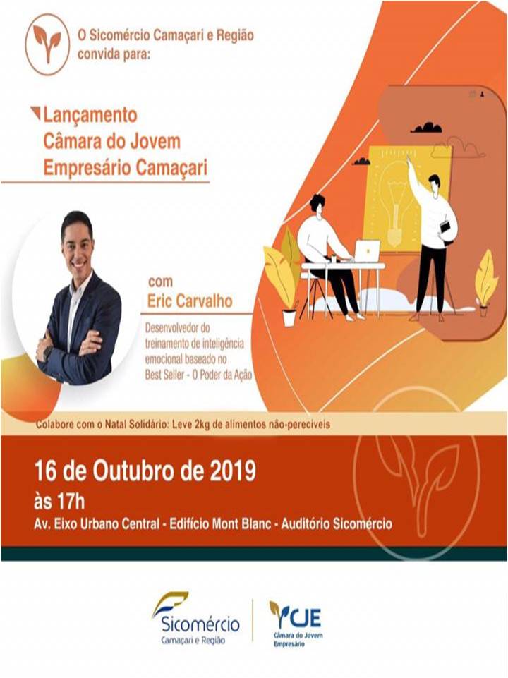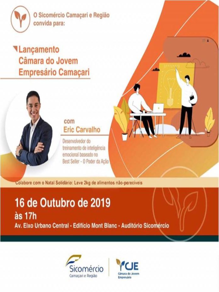 Será lançada nesta quarta-feira (16) a Câmara do Jovem Empresário de Camaçari pelo Sicomércio. O evento vai contar com a palestra do coach, Eric Carvalho. Formado pela Federação Brasileira de Coach integral Sistêmico – FEBRACIS, certificado pela Flórida Christian University (FCU) – EUA, ele irá apresentar o passo a passo para a pessoa sair da sua zona de conforto e conquistar seus objetivos, aplicando os métodos do Best Seller O PODER DA AÇÃO do PHD Master Coach DR. PAULO VIEIRA.