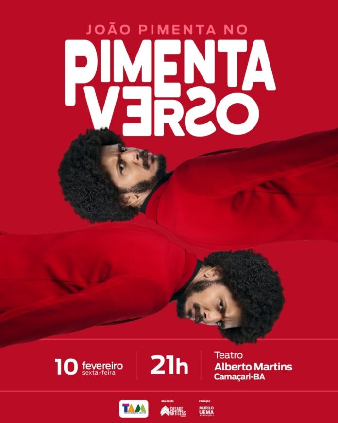Nesta sexta-feira (10/2), o comediante baiano João Pimenta apresenta às 21h, no Teatro Alberto Martins, o seu primeiro show solo de stand up comedy, “Pimentaverso”. Reunindo suas referências, vivência de um negro periférico e suas histórias mais mirabolantes, na apresentação, João Pimenta passeia pelo passado, presente e até um vislumbre do futuro, dando ao público um gostinho de todo caos, aleatoriedade e causos inusitados que formam sua vida. O valor dos ingressos variam entre R$ 40 e R$ 90, podendo ser adquiridos através do Sympla.