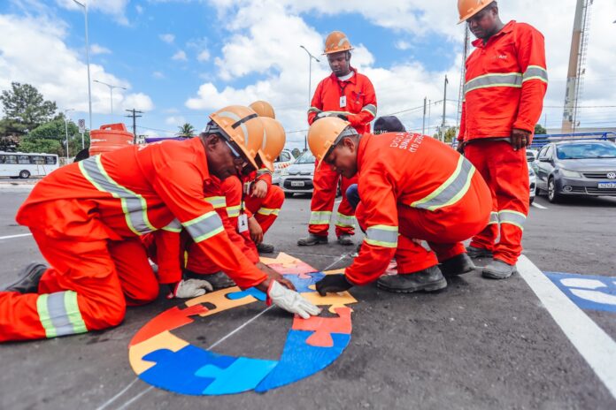 Para a pintura das vagas de estacionamento, foi usada a fita feita de peças de quebra-cabeça – que é um símbolo mundial da conscientização em relação a esta condição – que representa o mistério e a complexidade do autismo e serve como um lembrete poderoso da diversidade e singularidade que compõem o TEA.