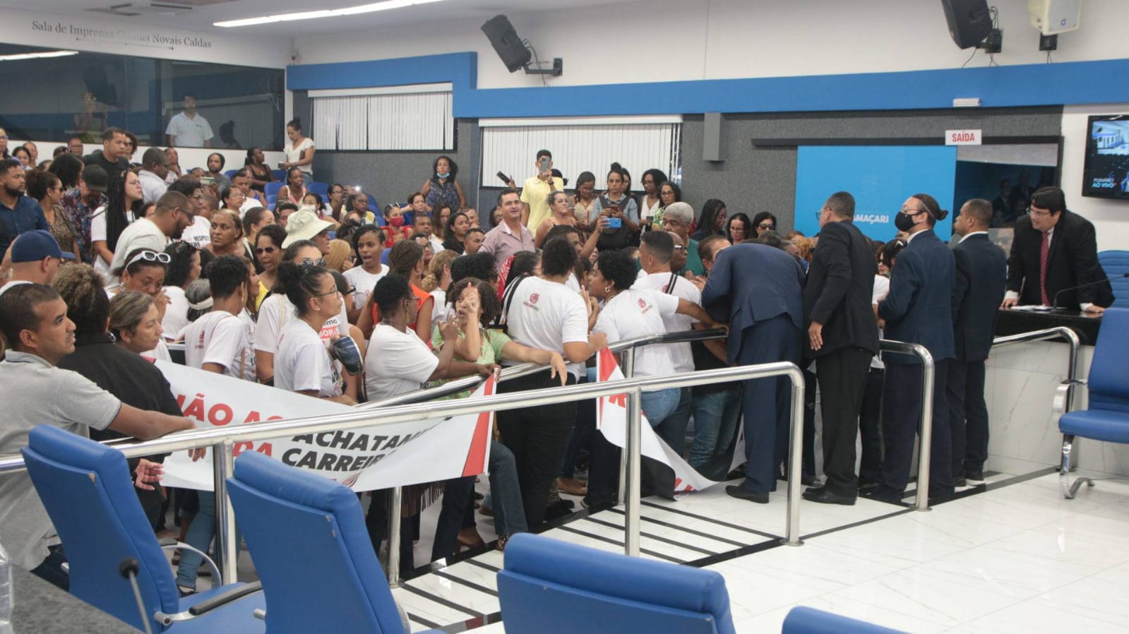 O presidente da Câmara, vereador Flávio Matos (União), estava em agenda externa, mas retornou para a Casa, com o objetivo de ouvir as reivindicações dos educadores, junto com os outros parlamentares que atendiam a categoria. “Essa pauta é de governo, é uma discussão que tem que ser ampla e os vereadores estão sempre à disposição . Eu reafirmo o que sempre digo, que aqui é a Casa do Povo, e vamos nos debruçar sobre isso”, afirmou.