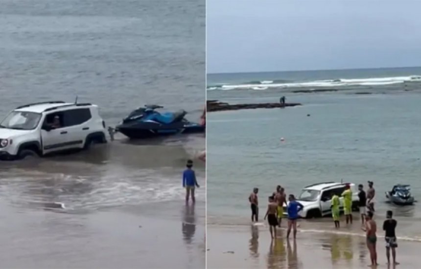 Vídeo: Carro atola ao tentar tirar jet ski do mar em Guarajuba