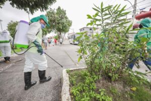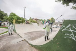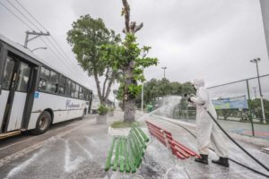 Mesmo sendo de rotina, o trabalho da Sesp foi intensificado em Vila de Abrantes. O titular da pasta, Armando Mansur, falou como funciona. “Estamos fazendo desinfecção e higienização dos grandes equipamentos, praças, bancos, portas de residências, maçanetas, passarelas, pontos de ônibus, postos de saúde, o que tiver de centro de grandes aglomerações, onde há grande fluxo de pessoas, vamos atuar. Para isso vamos usar um caminhão pipa com água sanitária e um pipa Jet com hipoclorito de sódio. Além disso, 35 homens estarão fazendo a higienização com pulverizadores e borrifadores”.