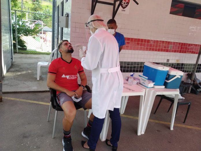 Como parte do protocolo de segurança, o Vitória tem testado os jogadores desde a reapresentação. A última rodada de testes foi realizada na manhã deste domingo. Na semana passada, o goleiro Caíque foi diagnosticado com a Covid-19. O goleiro estava assintomático e foi isolado até o resultado da contraprova, que deu negativo. No domingo, no entanto, foi constatado que o vírus se alastrou.