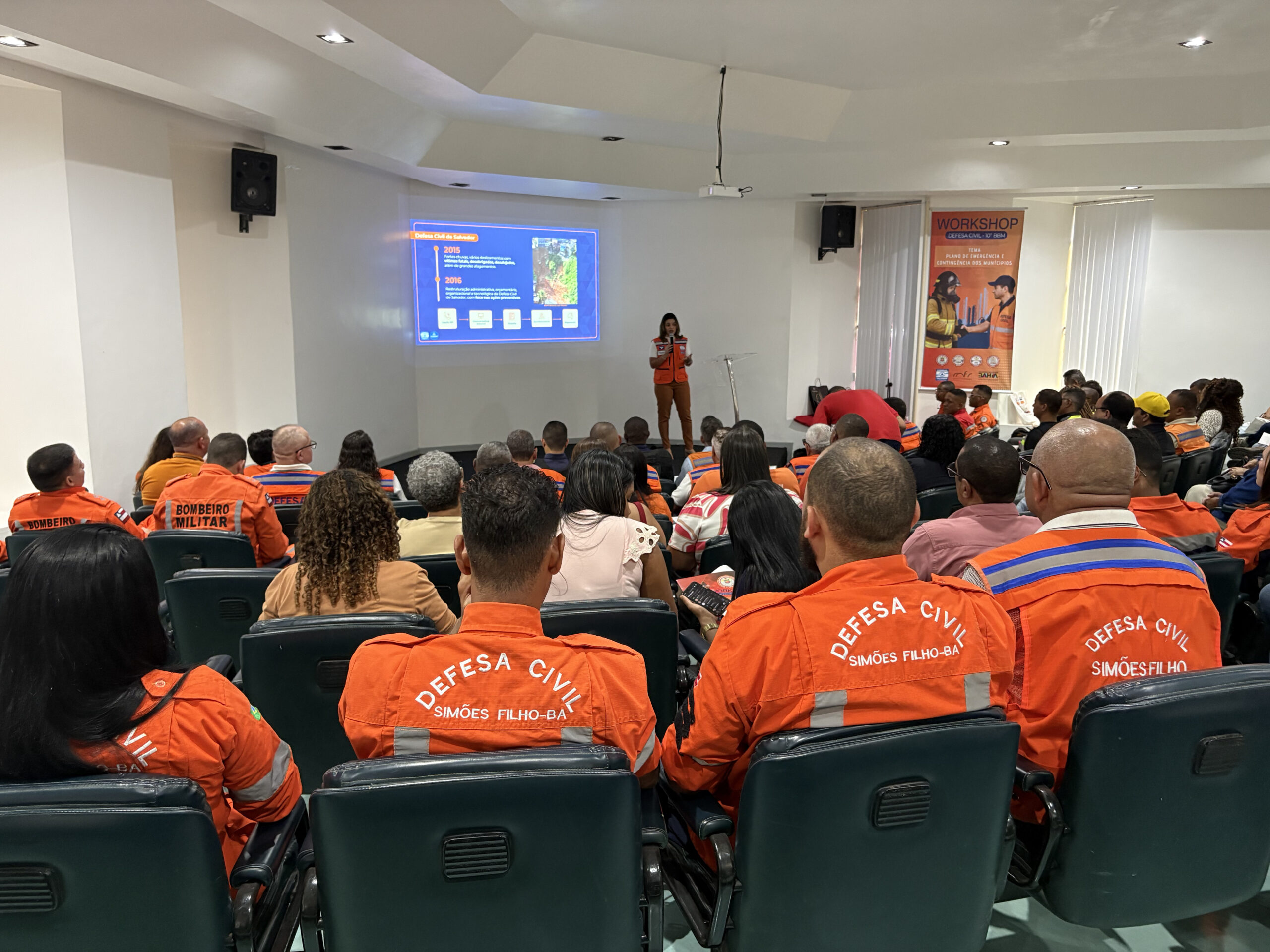 Nesta quinta-feira (16), a Defesa Civil de Camaçari iniciou a participação no workshop promovido pelo 10º Batalhão de Bombeiros Militar da Bahia (10º BBM), com o tema “Plano de Emergência e Contingência dos Municípios”. O encontro, que segue até esta sexta-feira (17), reúne representantes de diversas instituições de segurança, gestão de risco e proteção civil, com o objetivo de fortalecer a prevenção e o preparo frente a possíveis desastres naturais.
